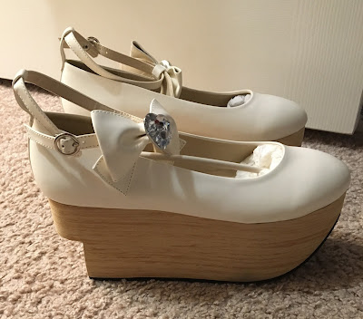 The print is lovely in person! Stained glass panels and angels throughout. I'm not usually a fan of lighter colorways, but I really like how it looks on me. What I found interesting is that the ribbons on the sleeves are drawstrings. So you can adjust the size of the arm hole openings if needed. The bust fits decently with a bit of room to spare. Only thing is, is that the trim on the underbust sits a bit higher than it should for someone with a bigger bust size. BTSSB should have taken that into account when designing the dress and adjusted accordingly. Anywho, it's a beautiful dress and I hope to wear it sometime soon. Maybe for a big meetup or an upcoming anime convention.
